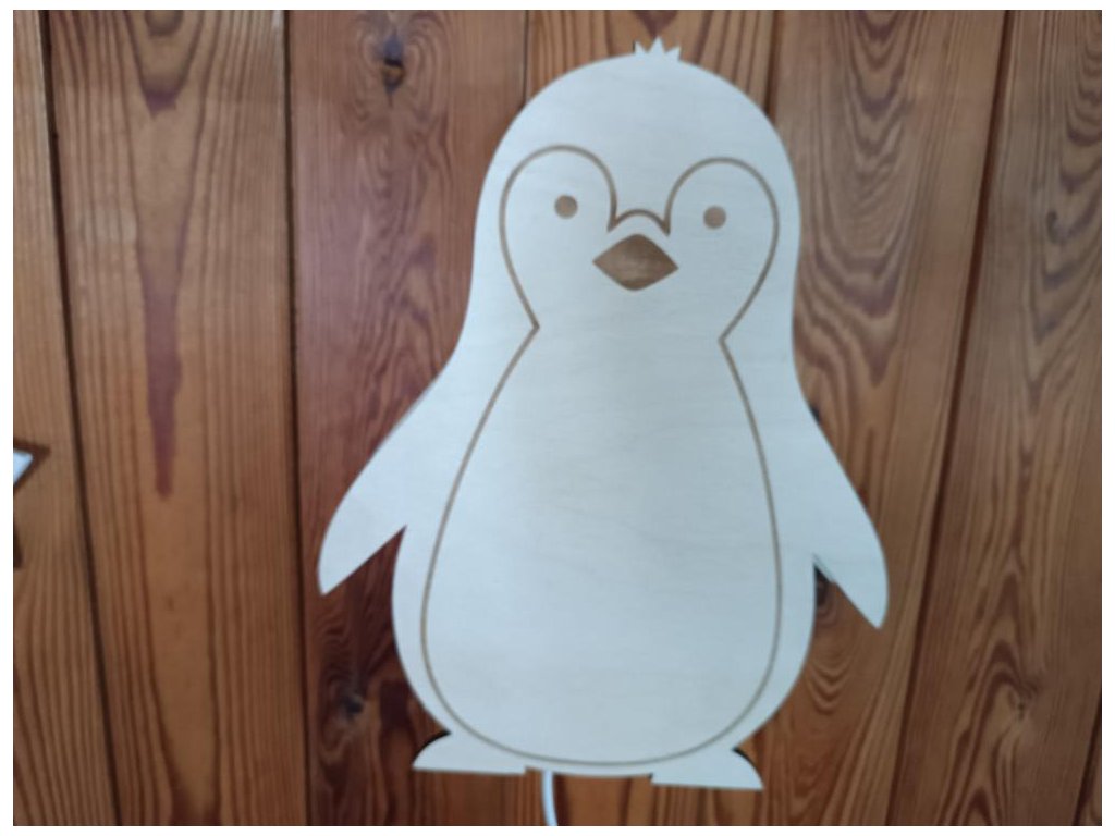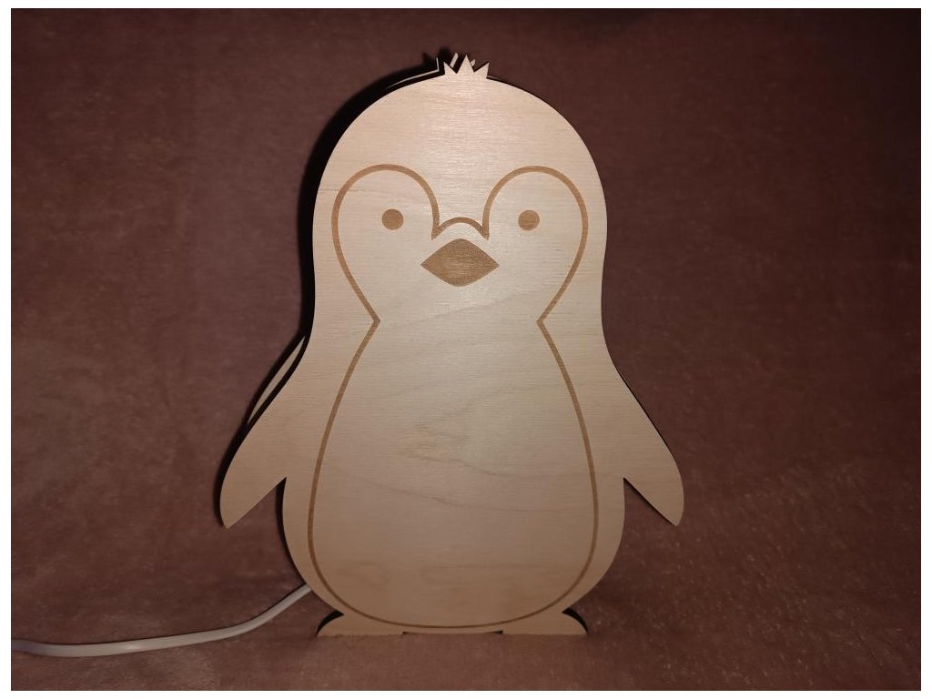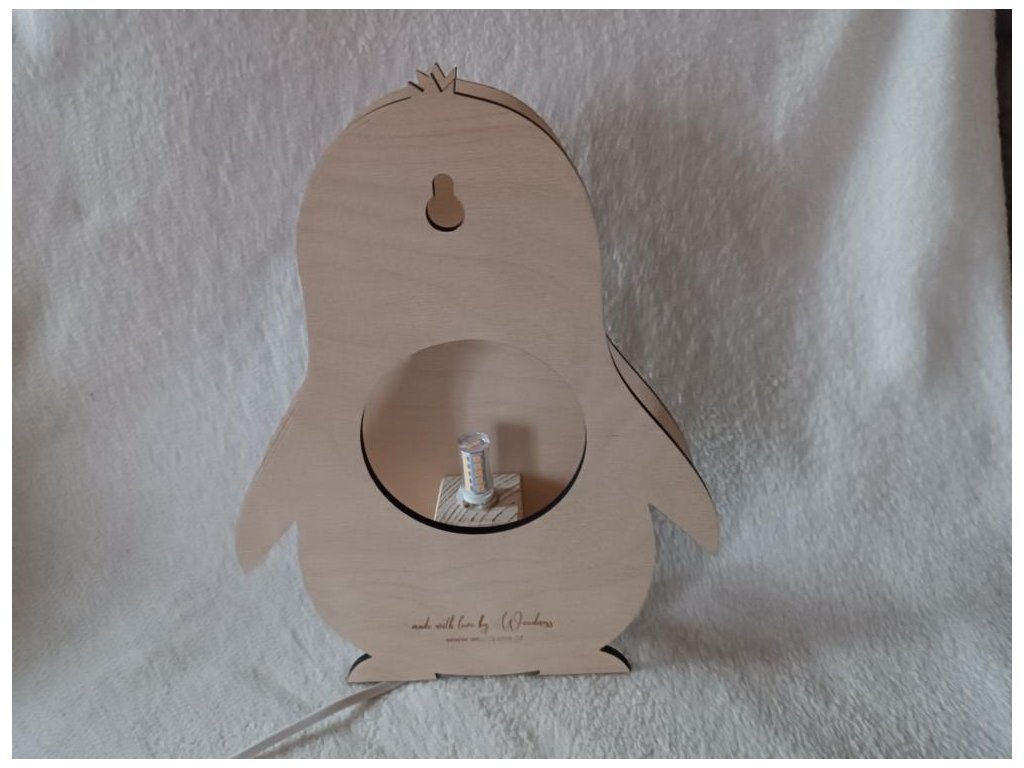 Lampička je vyrobena ze dvou kusů dřeva. Přední část, slouží především jako stínítko, aby Vaše děťátko mohlo usínat při tlumeném světle bez přímého záření.