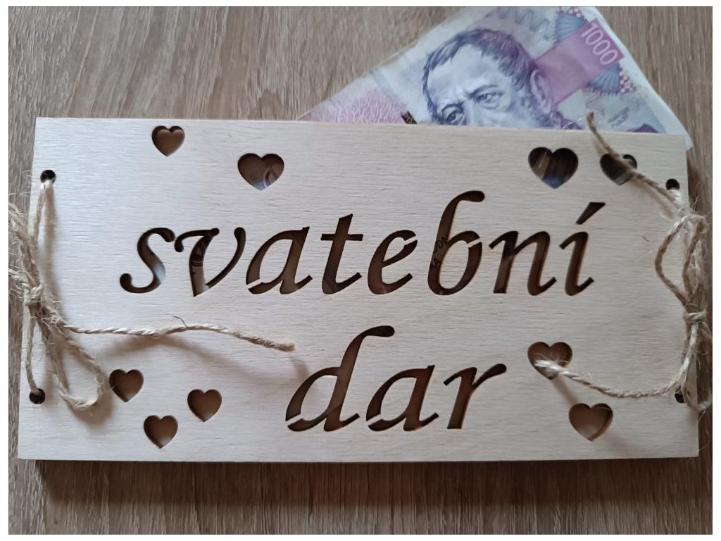 Dřevěná obálka na finanční hotovost pro novomanžele