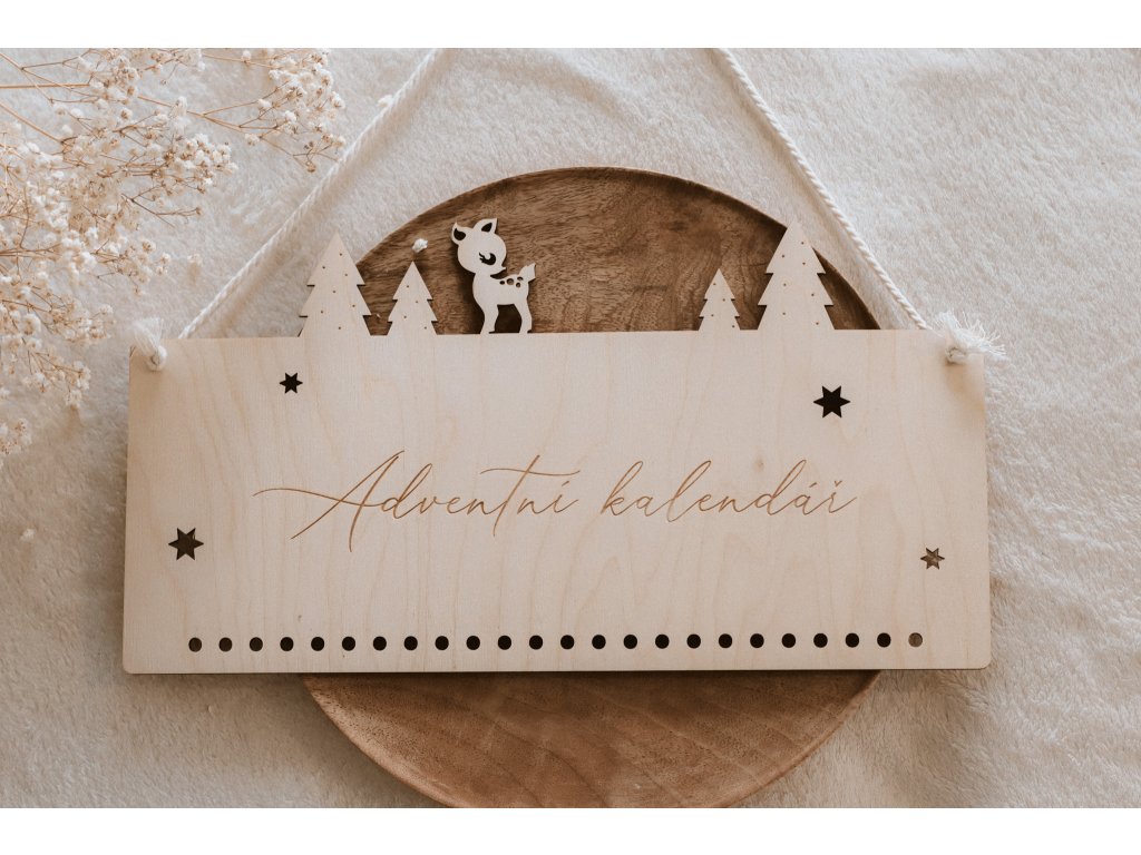Dřevěný adventní kalendář - Lesík se jménem nebo Lesík se jménem a pytlíčky