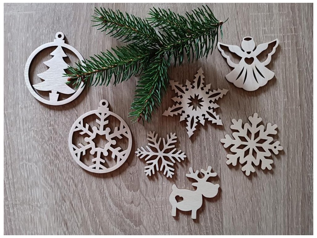 Sada vyřezávaných vánočních ozdob - 7 ks