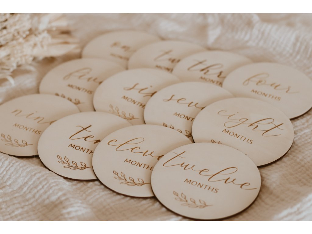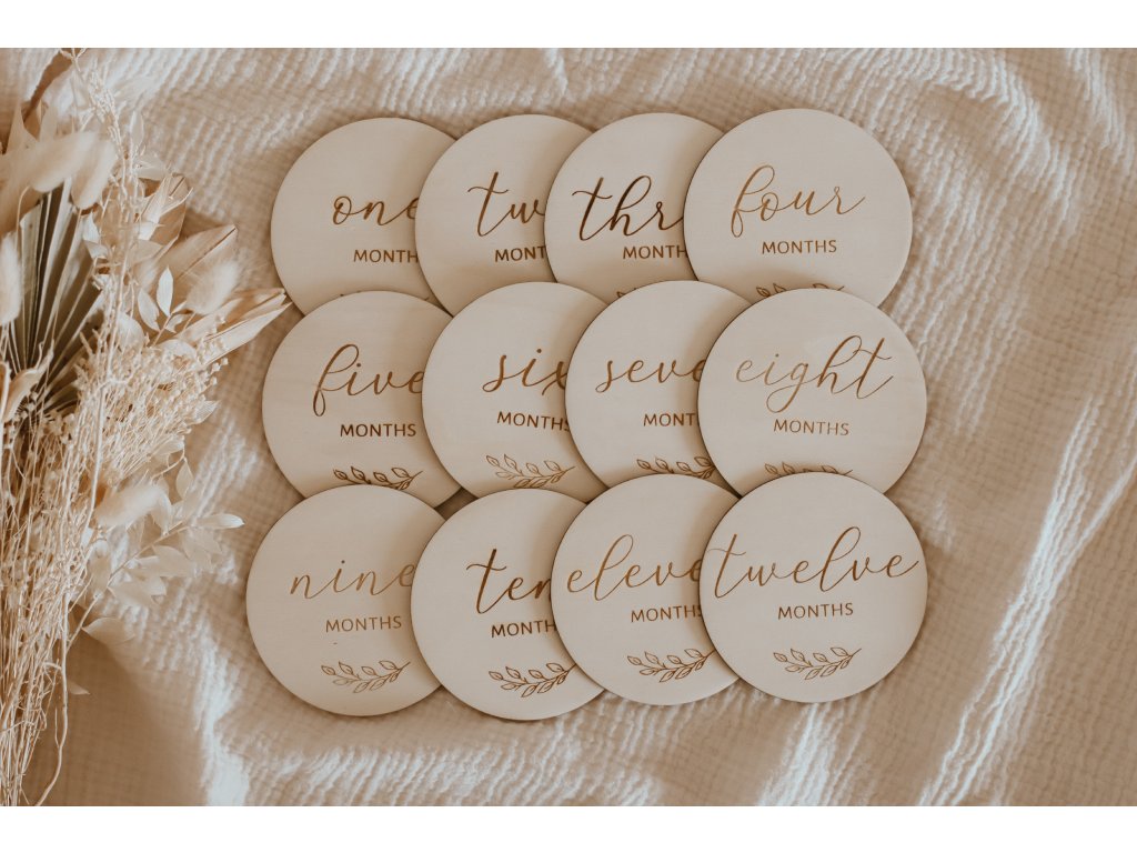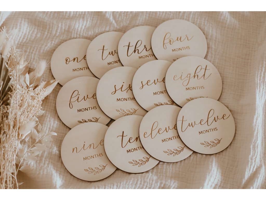 Sada dřevěných milníků v anglickém jazyce - 1-12 months